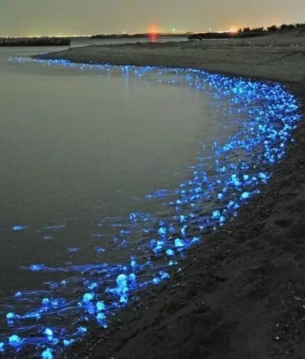 45.【日本富山海边的荧光乌贼(Watasenia scintillans)】这种乌贼通常7厘米长,发光部位位于触手末端 ~
