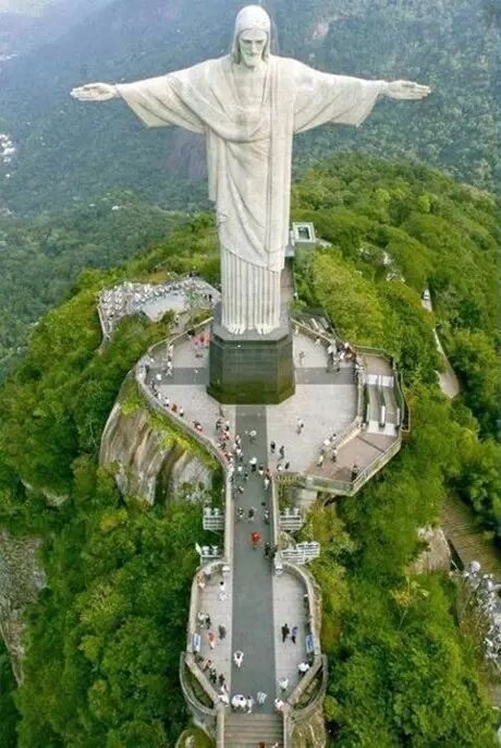 62.里约热内卢的基督救世主雕像,坐落在国家森林公园中高710米的科科瓦多山顶之上,俯瞰着整个里约热内卢市。它是该市的标志,也是世界最闻名的纪念雕塑之一。耶稣张开双臂欢迎来自世界各地的游客,是巴西人民热情接纳和宽阔胸怀的象征。